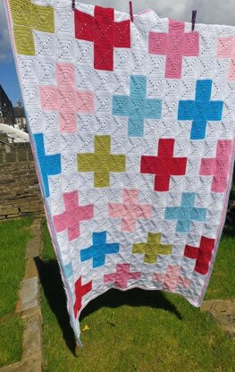 This easy modern kisses blanket is made using solid granny squares, joined to create the kisses effect. Each granny square only has 4 rounds making them quick and easy. Once all squares have been made, using the chart below they are then positioned and joined using a simple single crochet join.