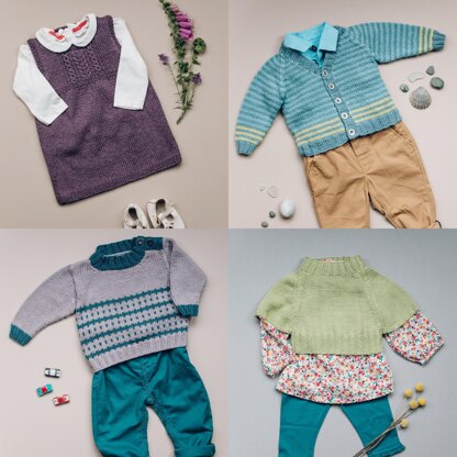 A collection of 12 designs for both boys and girls. With 12 designs it features pretty cardigans, boys textured sweaters and unisex designs along with a blanket and hat.