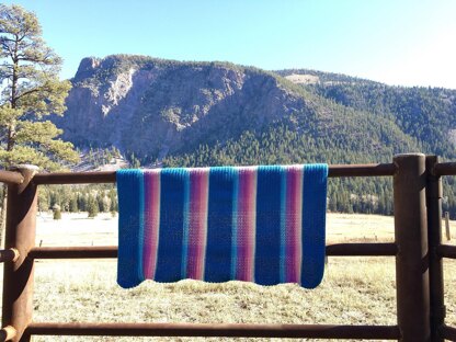 A simple, modern, southwestern stripe blanket to showcase your favorite self-striping yarn or use up scrap yarns.