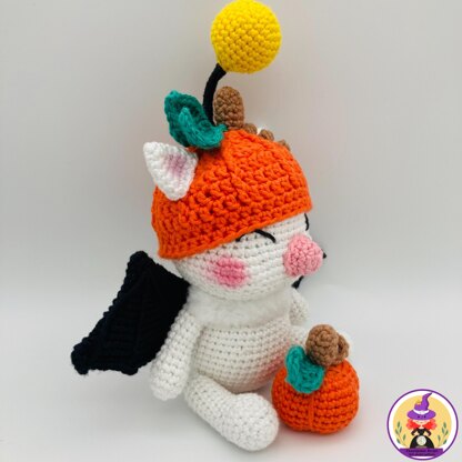 ❤️ Treat yourself or a loved one to Mr Mogloo the pumpkin Moogle. ❤️Please note this is a digital file (PDF file) and not the finished product. ❤️This pattern is written in English US terms and has well written Instructions with lots of step by step pictures suitable for all levels. ❤️You will need to know: Magic Ring Chain Single Crochet Double Chrochet Half Double Crochet Front Post Double Crochet Increase Decrease Slip Stitch ❤️Materials you will need: Double knit yarn in colours Black, White, Pink, Yellow, Orange, Green and Brown. I used Paintbox yarns 50g 100% Cotton in shades Pure Black, Paper White, Blush Pink, Buttercup Yellow, Blood Orange, Slate Green and Soft Fudge. Double knit fluffy yarn in Grey. I used Sirdar Snuggle Bunny 50g in shade Lamb. 2.5 mm and 3.0 mm Crochet hook Tapestry Needle Stitch Marker Toy stuffing A small pipe cleaner *Optional* Fabric glue. I used Hi-Tack. *Optional* Dry pastels in colours, Light pink and pink.
