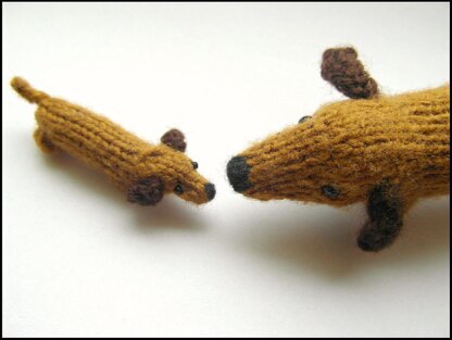This tiny little dachshund is only 2.5”/6,5cm long (measured from the tip of the nose to the end of the tail) and will fit on your finger. His mom (measures 5”/12,5cm) is always there to take care of him and together they make a pair that’s beyond cute!