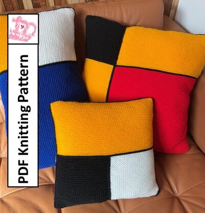 These geometric pillow covers were inspired by the work of the Dutch artist Mondrian.