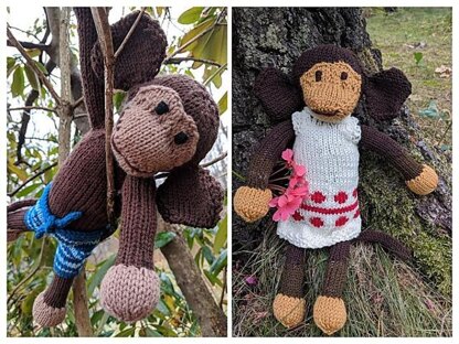 This adorable monkey is knit in the rounds. Head, muzzle, ears, tail, and limbs are knit separately and sewn on. The pattern offer a pattern for boy shorts and a girl's dress. A perfect gift for anyone. Finished Toy Size: 18” (46 cm) tall from head to toes.