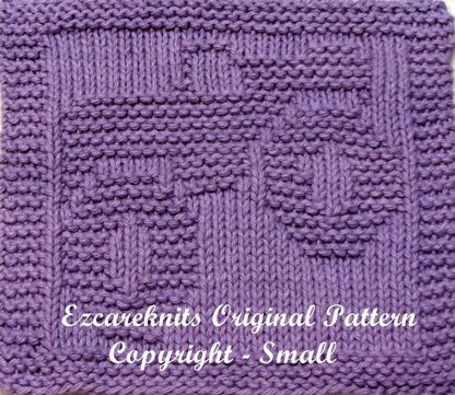 Materials Needed: Straight knitting needles, size US 7 (4.5mm) 100% Cotton Medium/Worsted Weight yarn 54 yards Darning needle needed for finishing. Stitches: Knit & Purl. Skill: Beginner - Easy Finished Size: 7.”W X 7.25”H