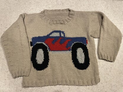 My son grew out of his monster truck jumper and since it was one of his favourites I knew I had to make another one in a bigger size. I re-charted the monster truck to make it nice and big on the jumper.