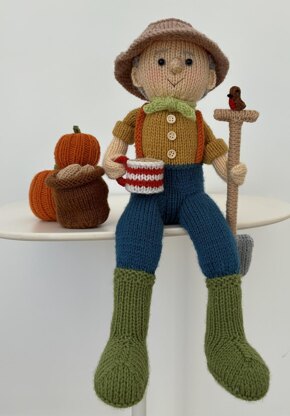 This a shelf sitter version of my original tea cosy pattern. He sits 22cm tall not including his legs. I used Hayfield bonus DK the largest amount is 40g for the trousers, the other colours are less than 30g I used 8mm safety eyes and 3 x 6mm buttons for his shirt. You will need a drinking straw for the spade and some card. The body is weighted with heavy poly-pellets, but this is optional.