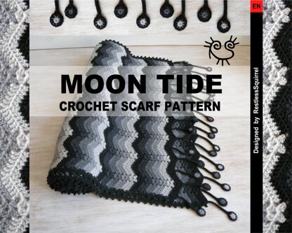 Scarf pattern "MOON TIDE"- artful crochet model, boho style, easy to create, US terms. With photo tutorial.