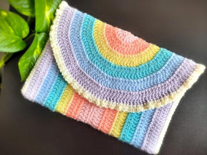 Moonbow clutch is a perfect stash busting pattern, especially if you have many small balls of the leftover yarn. Or hook this clutch up in a single-color yarn with lurex/metallic thread to match your glam outfit. The clutch can be used without lining too, as the stitches are tight and the fabric is sturdy. It can also be made as a quick gift for your loved ones.