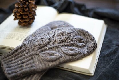 An elegant branch with beautiful voluminous leaves rise from the cuff to the fingertips of these fun mittens. The Morana Mittens are worked in round from cuff up and finished with decreases, alternating in round to give your fingers a lot of wiggle room. Made with aran weight City Tweed yarn, these mittens knit up very quickly and make a great last-minute gift.