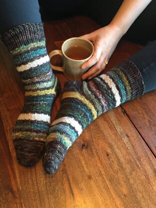 Morgenstern is a perfectly cozy sock! Designed to turn your scrappiest scraps into a cohesive unit, this sock uses a single color to tie your barely-coordinating scraps together. Worked toe-up in a slip stitch texture that shows off variegated colorways and feels like a hug for your foot, Morgenstern will be your favorite cozy-morning go-to sock.