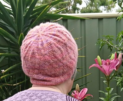 The band is worked in an asymmetrical rib to complement the body of the hat
