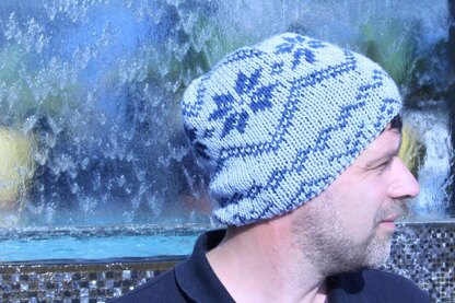 A double knit reversible beanie with the beloved Norwegian rose. Double knit fabrics have their own lining, so this hat is comfortable and warm. Both sides look great, and there are no threads on the inside to bother you.