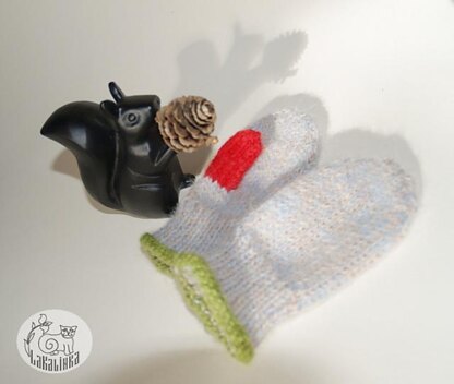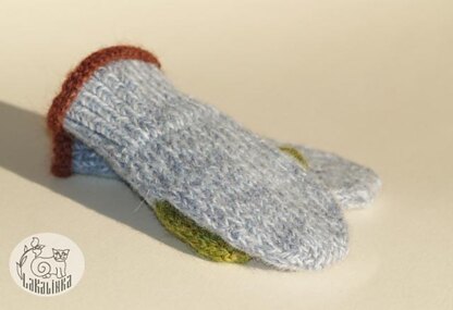 Yarn suggested: Sport 5-ply. You can knit the mittens with two threads of Light Fingering yarn.