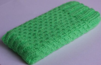 The Morse Phone Sweater has an interesting texture created by slipping stitches. The morse phone sweater would work well in both variegated and solids yarns. This cushy phone sweater isn’t just nice to look at, but also protects your phone scratches and provides some extra cushioning in case of a fall.