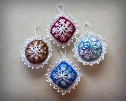 Add color and texture to your holiday tree this year. Work up quickly with very small amounts of thread. Mix and match colors to coordinate with your decor. Soft and safe, a great substitute for glass ornaments.