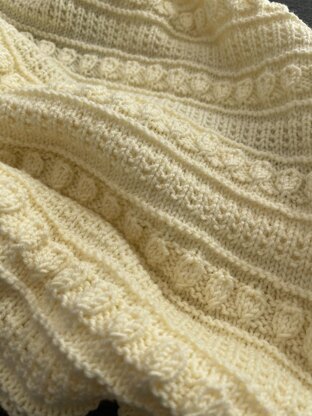 This pattern can be adjusted in width by adding or reducing the amount of stitches in multiples as indicated in the pattern. The length of the baby blanket can also be adjusted to your desired length by repeating the pattern stitch rows as set out in the pattern until you reach your desired length.