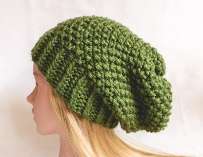 This pattern is for a moss stitch super chunky slouchy hat. This style of knitting is very easy to pick up, requiring only knit and purl stitches to create the pattern. Working with super chunky yarn also makes the knitting go by super fast, and you'll have a new hat to wear in no time!