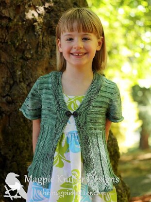 My daughter loves pink and purple, so she was less than thrilled when I came home with this green yarn. But the yarn insisted that it come how with me, and then told me that it wanted to be a cute little cardigan. Once I was done, my plan to use it as a shop sample was foiled when my daughter insisted on keeping it!