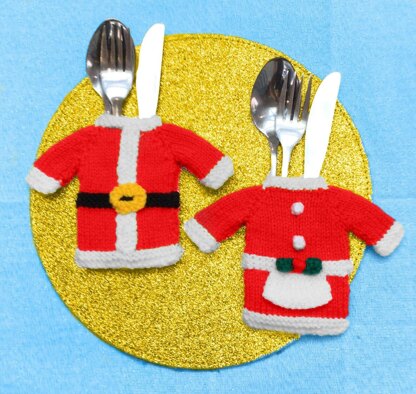 This gorgeous Father Christmas and Mother Christmas knitting pattern is made to hold cutlery. They measures 12 cms tall from the bottom of the holder to the top. These makes a stunning addition to your table, a fantastic fund raising item for fayres etc or great as a novelty decoration or a Christmas gift.