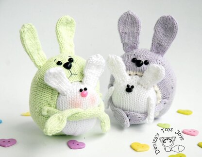 Materials needed • 4 double-pointed needles in a size suitable for the yarn weight you are using. I recommend using needles a size or two smaller than the yarn calls for, to produce a firm fabric. İ used Needles size US 1½ (2,5 mm) • Lilac colored yarn for bunny. I used Nako Baby Hoşgeldin / 60% bamboo , 40% nylon ; 100gr – 250m / • Mint colored yarn for bunny. I used Nako Baby Hoşgeldin / 60% bamboo , 40% nylon ; 100gr – 250m / • White colored yarn for tails and children bunnies. I used Nako Baby Hoşgeldin / 60% bamboo , 40% nylon ; 100gr – 250m / • Toy stuffing • Yarn needle • Stitch holder • Plastic eyes • Plastic noses • Prong snap button for fixing the arms