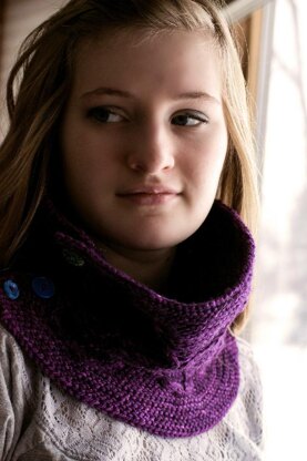 My Mom had some wild wallpaper in her bedroom when I was little. It was a red flocked damask and it used to mezmerize me. When I saw this cable pattern, it reminded me of that wallpaper. I combined that inspiration with my love of garter stitch to make this squishy, cozy cowl.