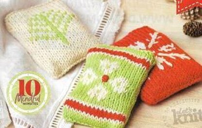 This is a pattern for three motif lavender bags. The fronts have a Fair isle motif, and added embroidery. The back has a triangle shape flap with a button and loop opening. You will need dried lavender and a small amount of fine weight fabric for the inners. Photos Lets Knit.