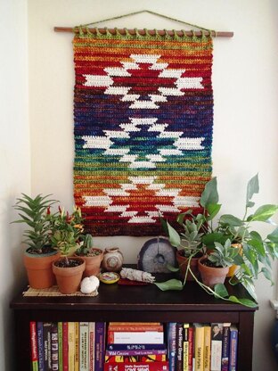 Pattern pdf includes: • detailed color photos of techniques for beginners • yardage requirements for each color as well as for the whole hanging • yarn recommendations including color descriptions and a recommended brand • color charts for fast reference • written color change instructions to reduce tiresome stitch counting