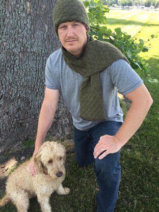This herringbone design is a masculine and fun knit! I designed this "Mountain Man Hat & Scarf" set per request from my son who spends many nights out in the cold mountains with his job. It is constructed from alpaca and silk wools for optimal warmth. The hat is fully lined using the silk yarn, but your personal choice of yarn fibers are substitutional. My son doesn't like knotting a scarf so I created a double layer of 4" on the backside of the scarf to insert the opposite end in. This attachment holds the scarf in place with a nice, smooth look on his shoulders.