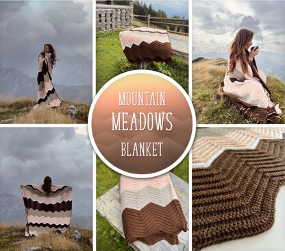 Mountain Meadows is a chevron blanket crochet pattern that brings the serenity of nature into your home. Crafted with a soothing palette of chocolate, light peach, sand, and white, this design evokes the tranquil beauty of a meadow at dawn. Ideal for beginners, the pattern includes easy-to-follow instructions to ensure a stress-free crafting experience.