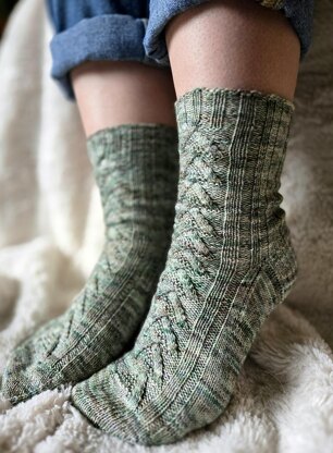 Please make sure to check your stockinette gauge after you have knit a couple of inches on the leg of your sock. If you are a tight knitter, you may need to go up a needle size because the cables do make a fabric with less stretch. Some of my testers had to adjust their needle size and some didn’t.
