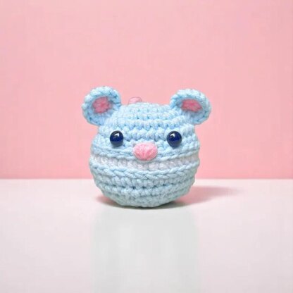 A cute crochet mouse macaron pattern worked in the round with step-by-step instructions and photos. Includes body, ears, tail, and assembly details.