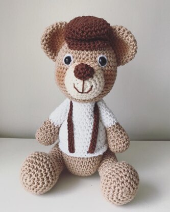 Inspired by Three Bears Yarn - Mr Bear Crochet Pattern. Finished Mr Bear is 12.5" tall when standing and 10.5" sitting. For this pattern she has been made in the lovely Three Bears Yarn Aran Affection.