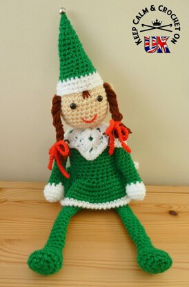 A companion to my 'Christmas Shelf Elf' my Mrs Christmas Shelf Elf amigurumi also loves to sit on your shelf during the holidays watching all the festive fun. Each little elf has her own personality and is sure to be loved for years.