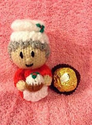 This gorgeous Mrs Claus is a sweet cover. I have put a Ferrero Rocher chocolate in the bottom but any similar sweet or sweets could be used. This makes a stunning addition to your Christmas table, a fantastic fund raising item for fayres and bazaar's or great as a novelty decoration.