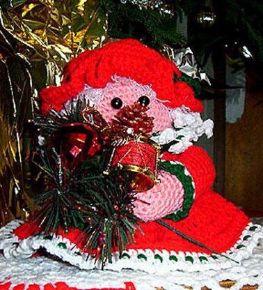 Another toilet paper cover that does not look like one. Mrs. Claus hides a double roll of tissue under her skirt. Worsted weight yarn, polyester stuffing and some small trims.