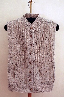 Needles used are smaller than usual for this weight yarn. This produces a garment which lasts longer and fits better. Sleeves are knitted from the shoulders down to the cuff. Stockinette gauge is 4 1/2 st/in on US 6.