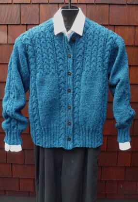 Pattern uses smaller needles than is customary for this yarn. This gives garment better shape and structure. Gauge is 5 st/in on US 5.