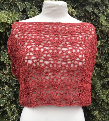 The top is worked in the round from the lower edge upwards towards the armholes, then the back and front are worked back and forth in rows and joined at each shoulder using ss.