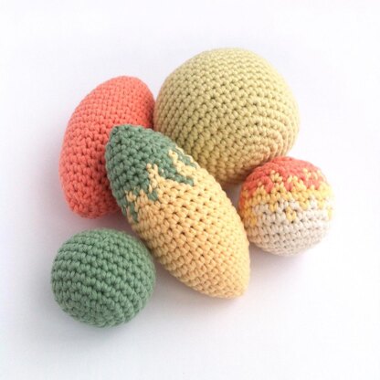 The smooth shapes with optional patterning have a fresh modern look, perfect for twig trees as well as traditional Christmas trees. You can really ring the changes with this pattern for different seasons and celebrations. They look great piles in a bowl in colours to accent your room, and can also be made into tactile toys for young children or pets, with or without a bell or rattle inside.