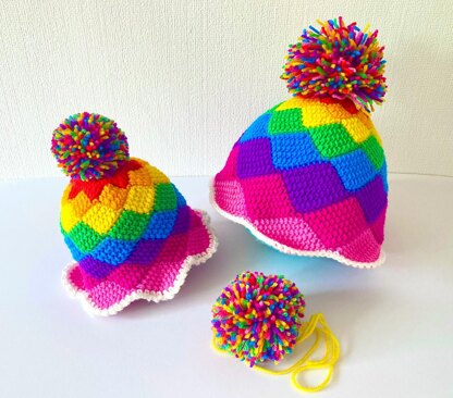 These crochet patterns are for adult and baby Checkered beanies, much needed in winter days; these beanies are very pretty and cosy and could be lovely gifts :)