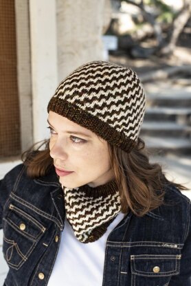 Cowl Approximately 168 yds/153.5 m of worsted weight yarn: Main Color (MC): 108 yds/99 m. Contrast Color (CC): 60 yds/55 m. Vrinda Yarn Mantra (100% Fine Uruguayan Merino, 150 yds/137 m in 100 gr): Muir Woods (MC) – 1 skein. Natural (CC) – 1 skein. For both hat and cowl 2 skeins of MC and 1 skein of CC are needed.