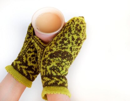 This is a pattern for a pair of mittens worked from the bottom up and in the round, using the stranded colourwork technique.
