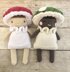 This PDF pattern will instruct you on how to knit my original Mushroom Baby Dolls. The Mushroom Baby Dolls are 9 inches long, and 5 inches wide. Materials: Worsted Weight yarn: Flesh Colored Yarn for skin (I used Light Brown and Dark Brown), color for body and ruffle (I used White and Off-White), yarn for Hair (I used Reddish Brown and Dark Brown), and yarn for Mushroom Hat (I used Red and Green). Poly-fill stuffing Pair of size 4 (U.S.) knitting needles Yarn Needle Thread or yarn for embroidery of face Small amount of Pink Felt and matching thread for the cheeks Techniques: Knit and Purl Stitch Knit 2 stitches together Purl 2 stitches together Casting on and casting off Increasing Decreasing For Increase, any method will work, if using Kf&b method, then work Kf&b when you see “inc.” If using the “make one method,” then when you see “inc” you will knit the next stitch, then make one stitch.