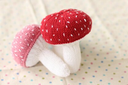 Knitted in DK weight yarn, this is a quick and fun project that makes a lovely gift. The mushroom rattle looks beautiful in a whole range of colours - change the look by mixing up colour combinations and varying the density of the embroidered spots.