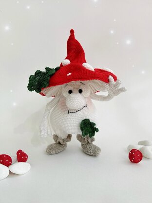 The magic mushroom is a forest dweller. He is a kind and completely inedible. Habitat area: your home and your heart. You ask: -Why does he have such a big and beautiful cap? He will answer: - To attract your attention. I told you a little about our hero, who will live at your home with this very detailed pattern. The toy is made from a wireframe, which helps to fix any desired position and move the legs, arms, neck, and even fingers. The mushroom is crocheted with a crochet hook only and it turns out to be almost 24 cm tall, if the yarn parameters are correctly observed. The crochet pattern consists of 35 pages and includes more than 90 photographs and charts.