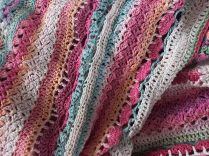 Inspiration for this blanket is the colors and texture of a rose garden. Not every rose is ever alike the colors and tones, fills my heart with joy, the same love when spring arrives and the garden bursts out in full beauty, this pattern is an ode to my rosegarden which gives me such joy. A combination of floral crochet stitches between rows of saddle stitches forms the rows of roses and flowers, between pathways and grassways of a garden. Pattern is worked in rows Pattern is broken down into a rowed section each consisting of written instructions and charted in a diagram. This is a pattern only , step by step instructions can be found on my website. Example pattern is worked in 100 % dk Cotton yarn.