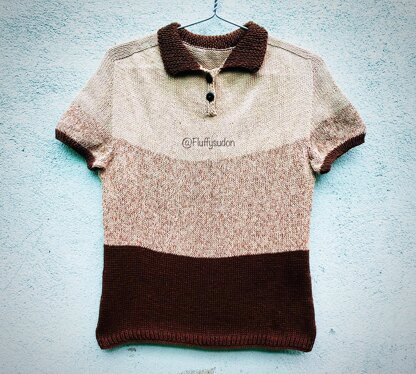 I knit this polo for my friend's birthday. I really love how it turns out. I hope you guys like it. MyHa is worked top down with saddle shoulders. It is worked in flat (back and forth) then joined and worked in the round. After the piece has been divided for body and sleeves. The body is continued in the round with circular needle. The sleeves are worked in the round with double pointed needles. Sizes: XS-S-M-L-XL-XXL Bust circumference: 76-81-86-93-100-106cm Length (measured at back): 53-55-57-59-61-63cm Yarn: Paintbox Simply DK Number of skeins: 3-3-4-4-5-5 (for short sleeves) Yardage: 750-1000m Needles: Circular needles 40/60/80cm, Double Pointed Needles: 3,5mm, 4,0mm and 4,5mm Gauge: 24sts x 28 rows = 10 x 10cm in stocking stitch on 4,0mm needles after blocking. Thank you very much. Enjoy knitting! FluffySudon