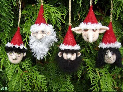 These mystical Christmas baubles are approximately 5 1/2 inches in length each. Knitted flat using 3mm needles and mainly scraps of DK or equivalent yarn, small amount of eyes lash and mohair (optional). The pattern is clearly written and gives a tutorial for making the glasses and eyes.