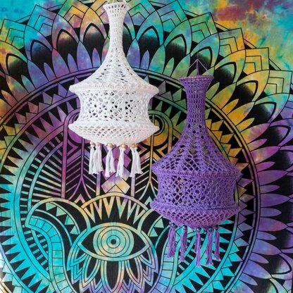 When following the gauge and using same sized rings like in the sample (2x 25cm, 1x 10cm) you'll get the size of a lampion in 50cm length and 25cm width. You can use different yarn and ring sizes though!
