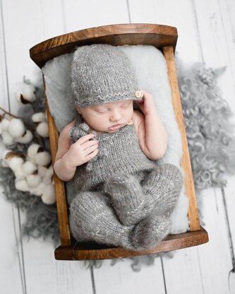 Fits both newborn and 21-22 inch reborn size knit romper, beanie, slouchy and part knit/crocheted buddy bear pattern THIS IS NOT THE FINISHED ITEMS